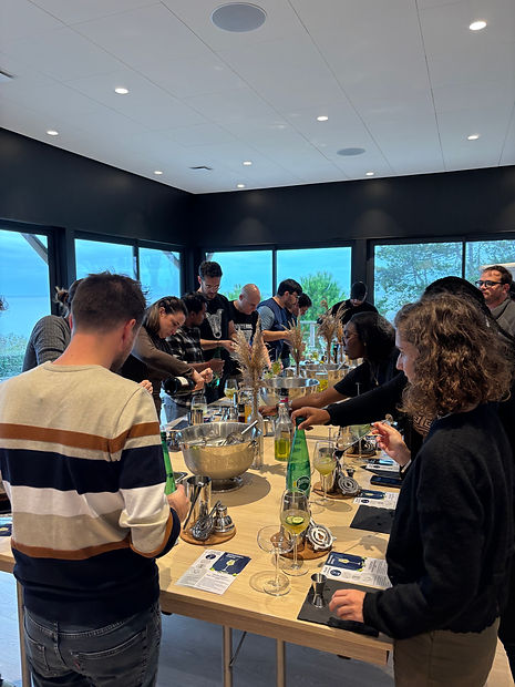 Chaque participant dispose de véritables outils de barman : shaker, doseur, cuillère à mélange… pour vivre l’expérience comme un pro.